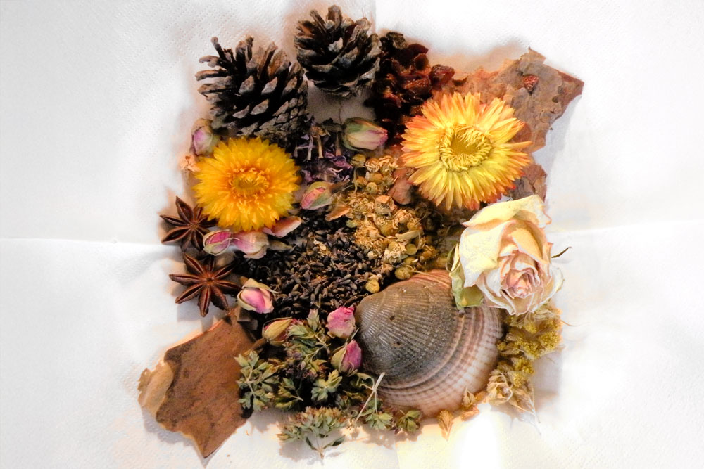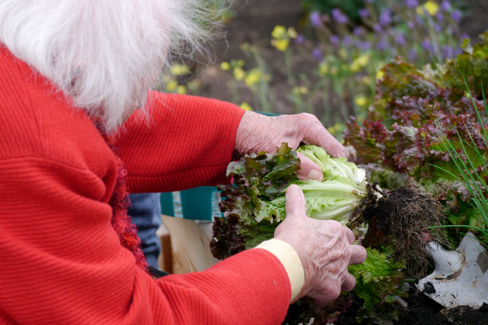 Kräuter und Gemüse werden gemeinsam geerntet und verarbeitet, und es entstehen zusammen bunte Blumensträuße und Pflanzengestecke.