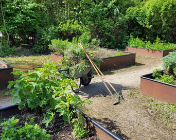 Seit 2019 bepflanzen wir gemeinsam mit der Gartengruppe die Hochbeete im Park mit selbst gezogenen Sommerblumen.