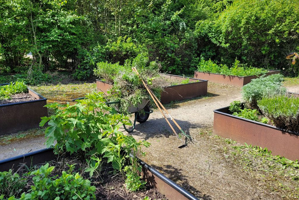 Die Bepflanzung und Pflege obliegt den Mitarbeitenden und Bewohnerinnen.