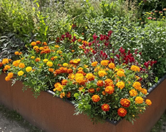 Seit 2019 bepflanzen wir gemeinsam mit der Gartengruppe die Hochbeete im Park mit selbst gezogenen Sommerblumen.