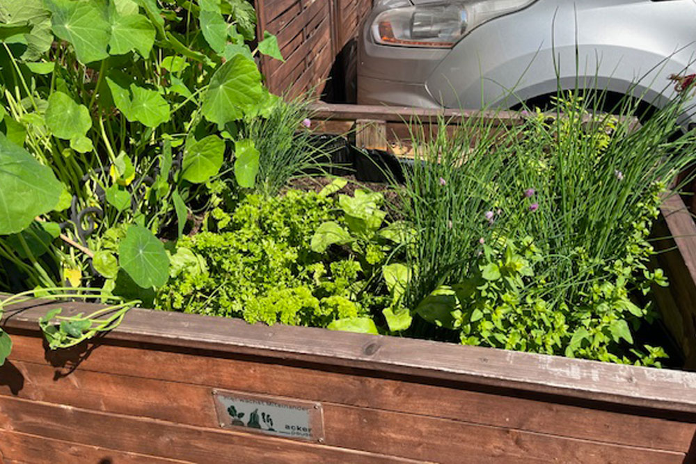 Beim Pflegeacker werden Pflegeeinrichtungen 2 Jahre begleitet. An Hochbeeten wird Gemüse angebaut, gepflegt und geerntet. Mitarbeitende und Bewohnerinnen gärtnern dabei gemeinsam.